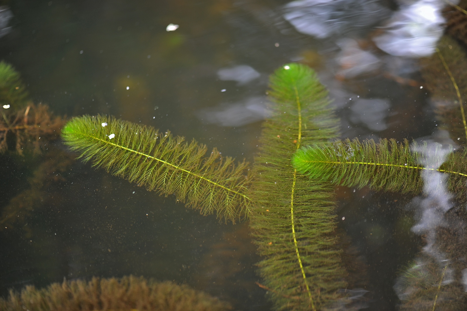 Kamslinga (Myriophyllum heterophyllum) är en EU-listad invasiv främmande art som för första gången hittats i Sverige, i Alsterån i Kalmar län. Foto: Mikael Svensson